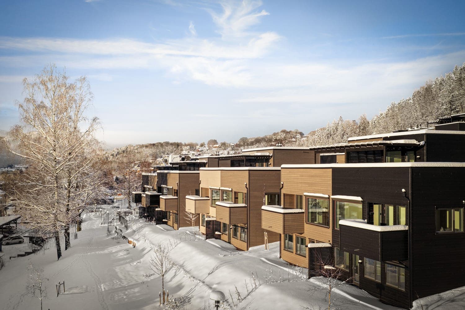 Kun 10 rekkehus igjen i Lier Hageby. Rett utenfor døren finner du store fellesarealer med lekeplasser for barn i alle aldre.